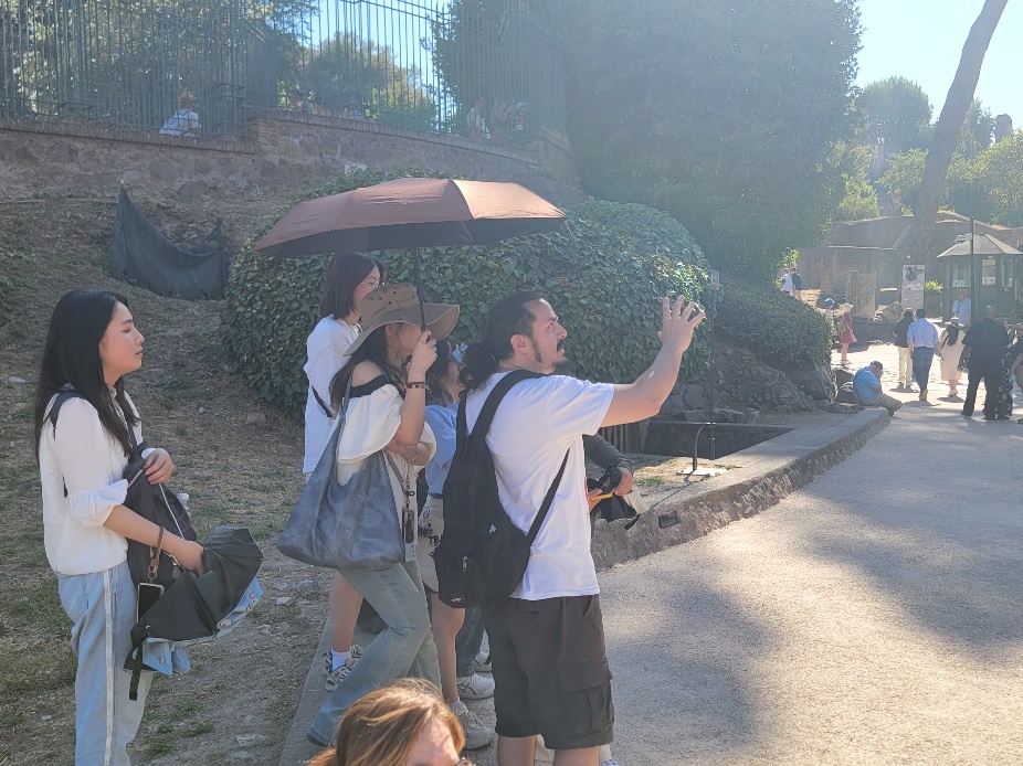 Next, the team ascended Palatine Hill, where the professor explained that it is the birthplace of ancient Rome, where, according to legend, Romulus, the founder of Rome, established the city. By visiting the palace ruins and archaeological sites on Palatine Hill, the team gained insights into the early history and culture of the Roman Empire. Under the professor's guidance, they witnessed the magnificent remnants of ancient palaces, igniting their passion for the protection and activation of architectural heritage.