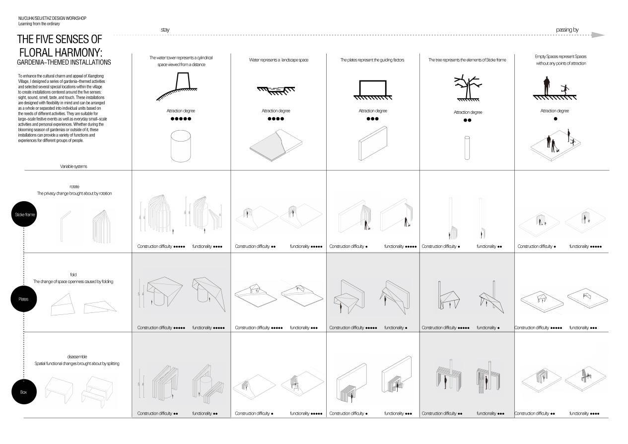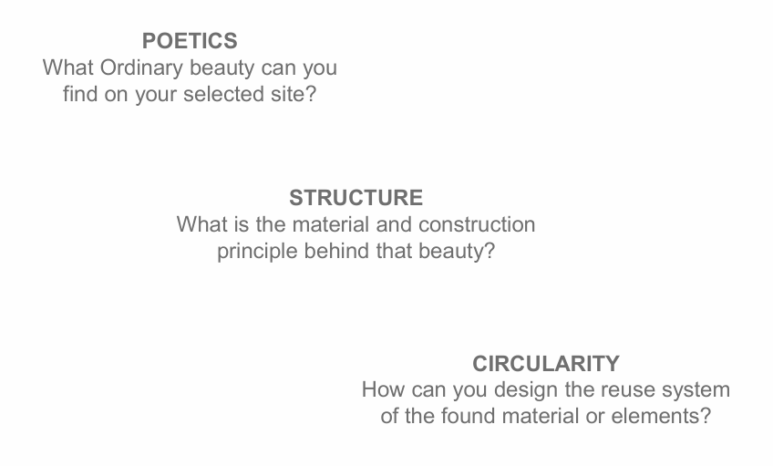 In recent decades, reducing the environmental impact of the construction industry has become an urgent issue for society to address, with designers playing a crucial role in this process. This design workshop, set in Xiangtang Village on the outskirts of Nanjing, aims to uncover the poetry in everyday life, explore adaptive structures, promote the reusing of materials and information, and activate the site's potential. Additionally, it seeks to reflect on the existing frameworks of these concepts through hands-on experience.