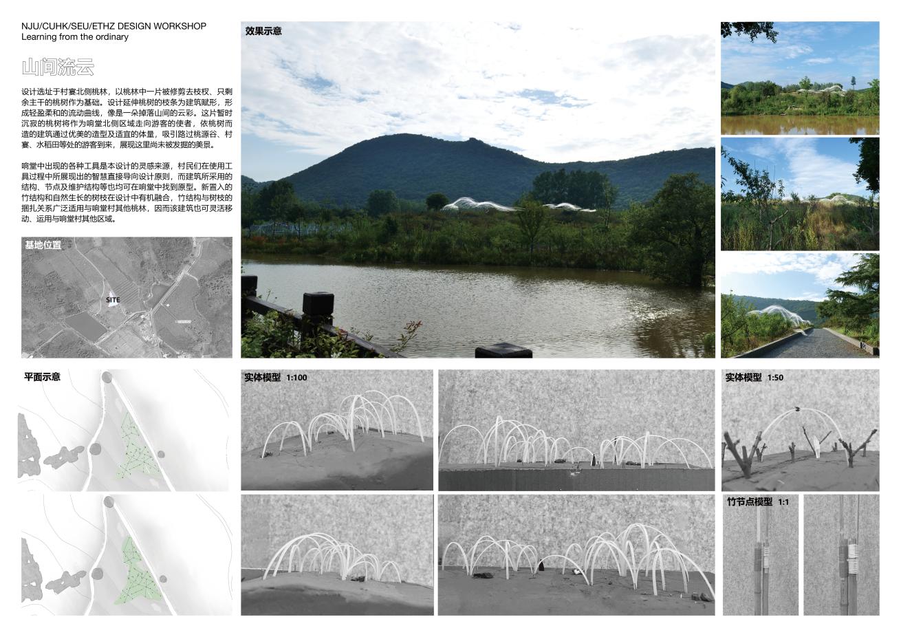 Learning From the Ordinary workshop is a fulfilling, unique, and sometimes crazy experience.In the early stage of site analysis, we were encouraged to use different perspectives to discover the potential daily life in the village; In the concept stage, I carried out the design with sketches and models at an extraordinary speed, and the rapid construction made me realize the charm of Learning by Doing. In the third week of structural research, I drew detailed drawings of the scheme as a digital model group, which also made me more clear about the structural system and construction process. In the final construction phase, I faced new difficulties on the site every day and tried to solve them. I also gained a lot of real construction experience.Thank you very much for the guidance of the four enthusiastic and experienced teachers. The friendship gained in this process is also valuable. I am very happy to complete the construction of a pavilion with you!