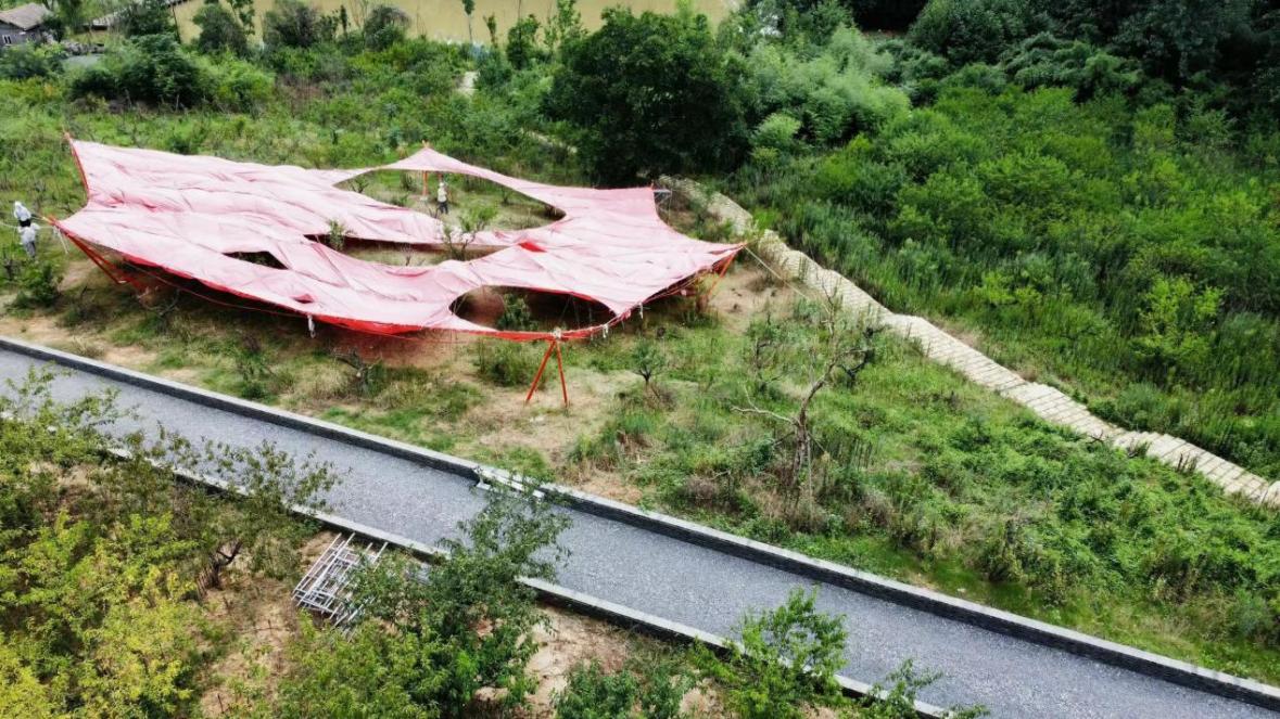 The one-month design workshop ended successfully!From almost regretting participating to regretting almost missing out!Our design starts from the discussion of daily life, excavates the materials and structures used in the site, combines the concept of circular construction, and explores the adaptive structure and the sustainable building design method in the site.Key words: Crazy, Dynamic, High-intensityCrazy: Just 12 students and 4 teachers built a device of more than 750 square meters in 5 days!Dynamic: Huge pavilions like red rivers, undulating in the valley.The building is completed by low-tech construction methods, the components are minimally processed, there is no accurate data, the construction process is designed while doing, changes continue to the last moment of completion.High-intensity: It took four weeks to complete the process from site analysis and conceptual design to structural study and construction.This work camp was the first time for me to participate in the whole process from design to construction. For me personally, it was not only the training of construction, but also the challenge of coordinating the needs of all parties.Thank you very much for the assistance of Xiangtang, the guidance of teachers, the cooperation and tolerance of partners, the participation of volunteers, and Prof. Hu's recommendation!!