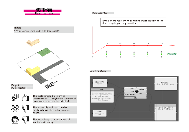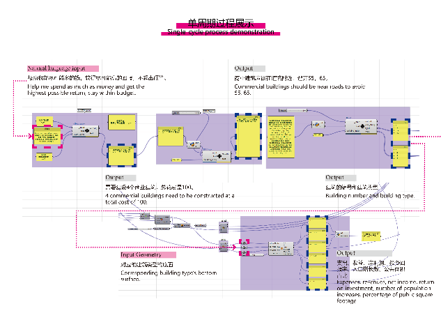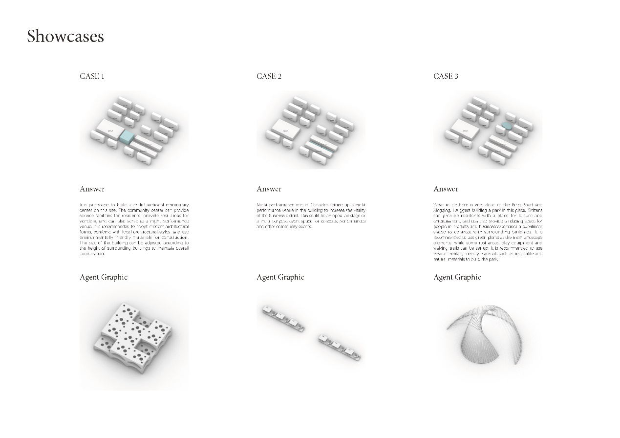 The AI agent makes spatial decisions based on cash flow, requirements, population, and the proportion of public space, offering decision-makers multiple cycles of AI construction simulation results and economic model assessments, thereby making spatial decisions more scientifically effective.
