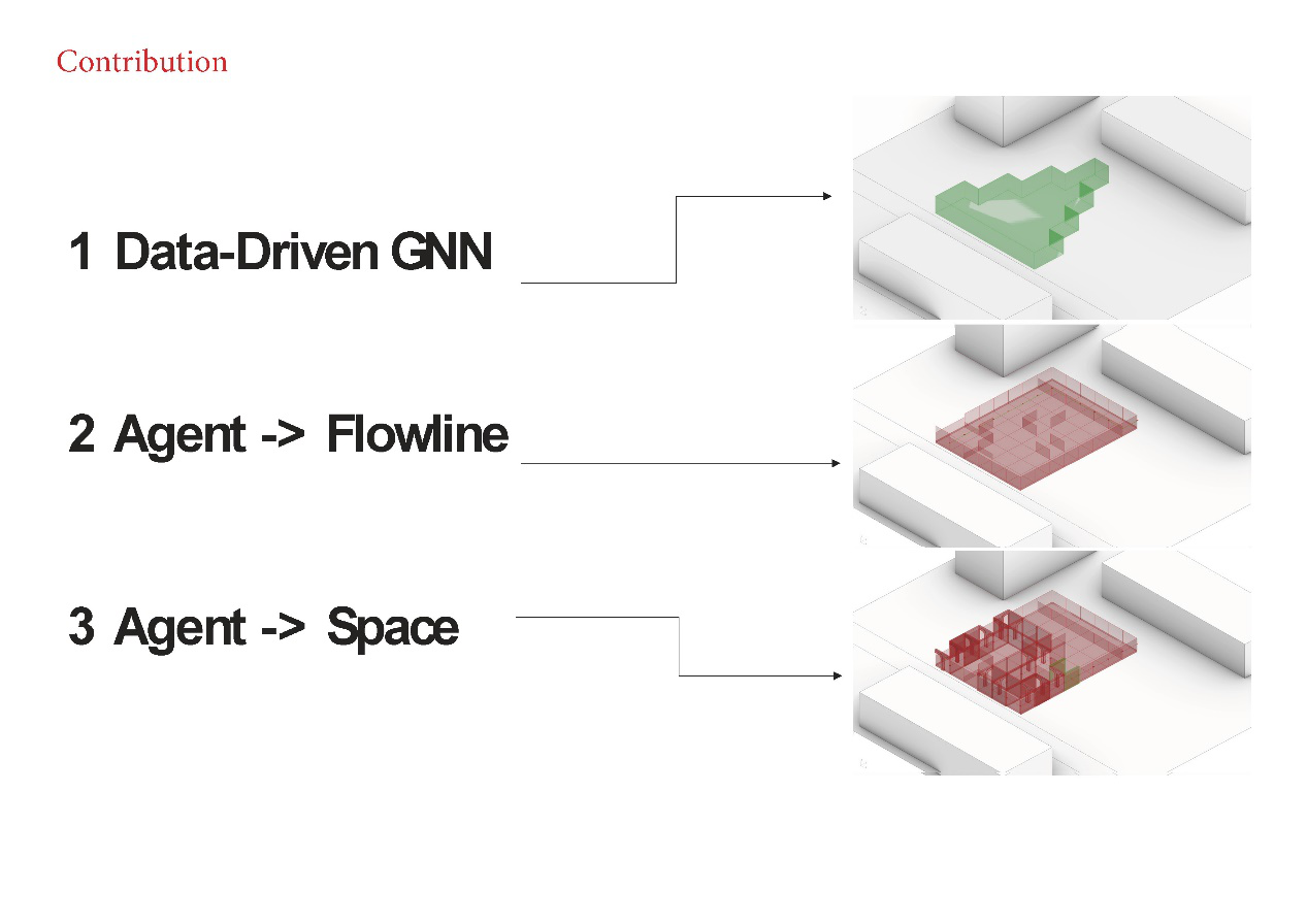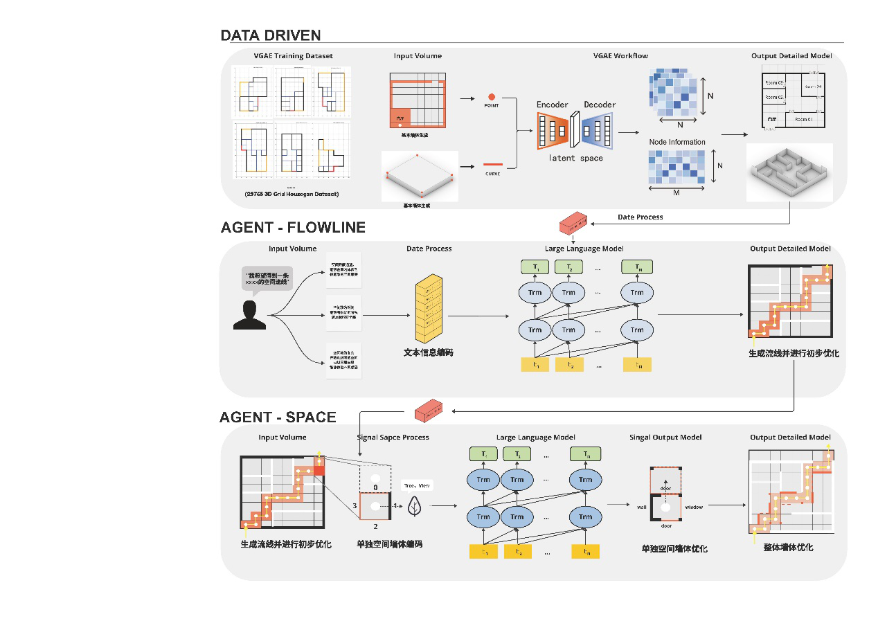 1. Application of AI in the design process: Investigating the role of LLMs, GNNs, and GMs in architecture to uncover new workflows, such as rapid concept generation, structural optimization, and automated design iteration. Early-stage assessments aid architects in selecting superior schemes, revealing the prospects and potential of AI in contemporary architectural design.
